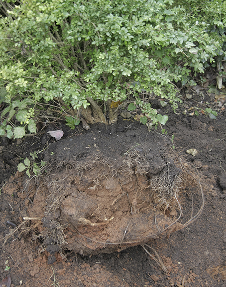 | Ball & Berlap wires had not been removed from growing boxwood. |