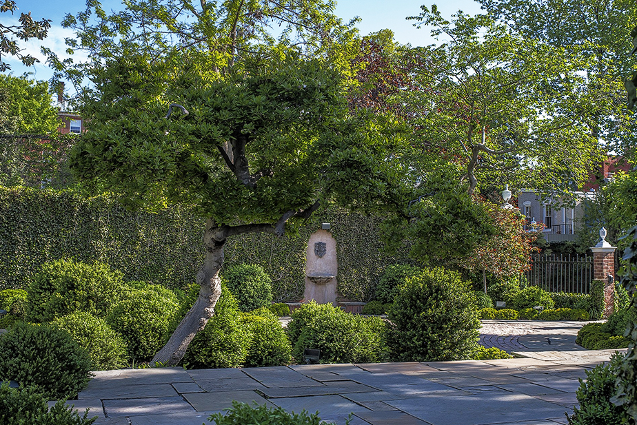 The garden had been assembled over the course of a century or more, but it was given its character in the 1930s as one of the major Washington projects of a pioneering landscape architect named Rose Greely. Greely brought an Arts and Crafts sense of detail and craftsmanship to the prevailing Colonial Revival style of her time, and the Gray garden was a masterpiece of spatial arrangement in a contained urban environment.